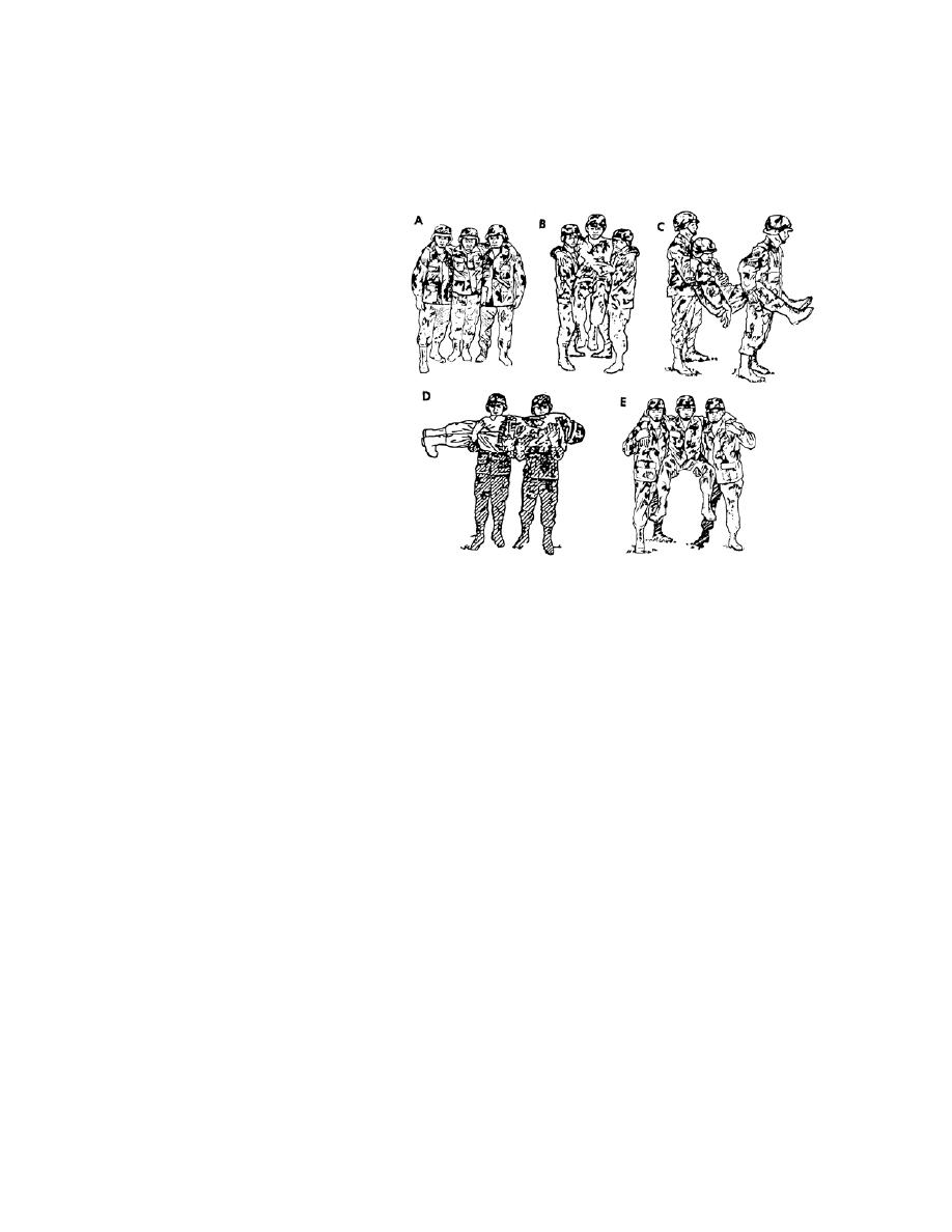 13, match the two-man carry in the left column with the correct letter of the illustration in
