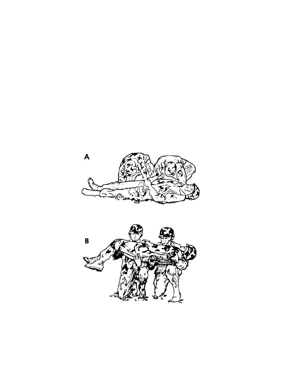Figure 3-20. Lifting a casualty using the modified two-man arms carry.