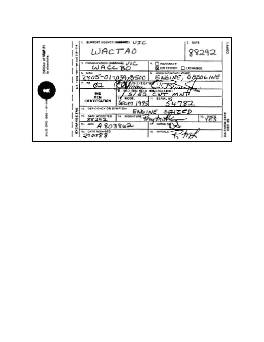 Figure 1-20. Completed DA Form 2402, Equipment Exchange Tag.