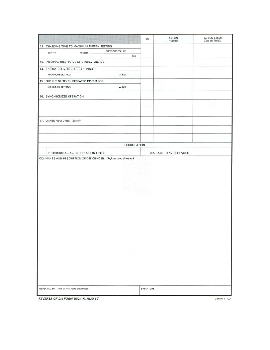 > Figure 2-4. Blank DA Form 5624-R (back). - Medical Maintenance and Supply Procedures