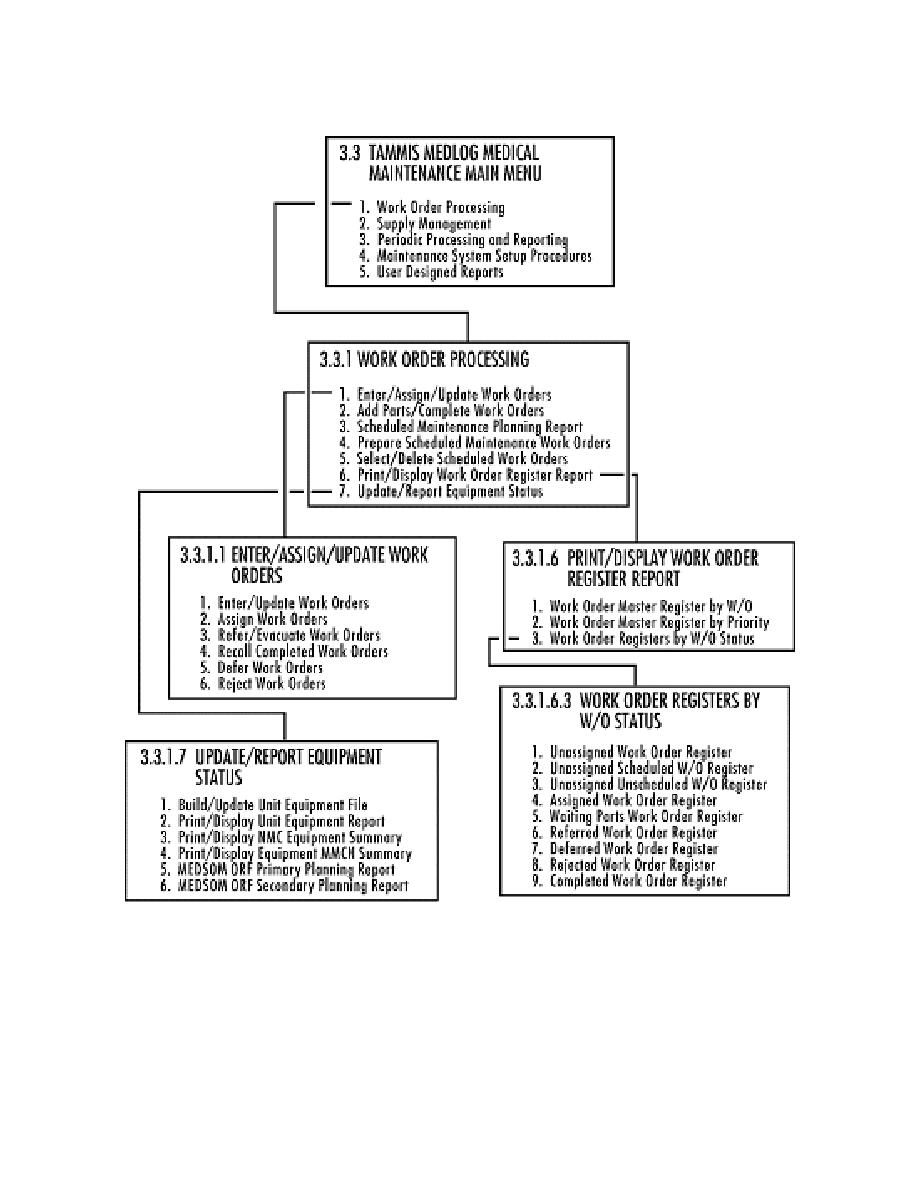 > Figure 4-5. Supply Management menu and submenu options. - Medical Maintenance and Supply Procedures