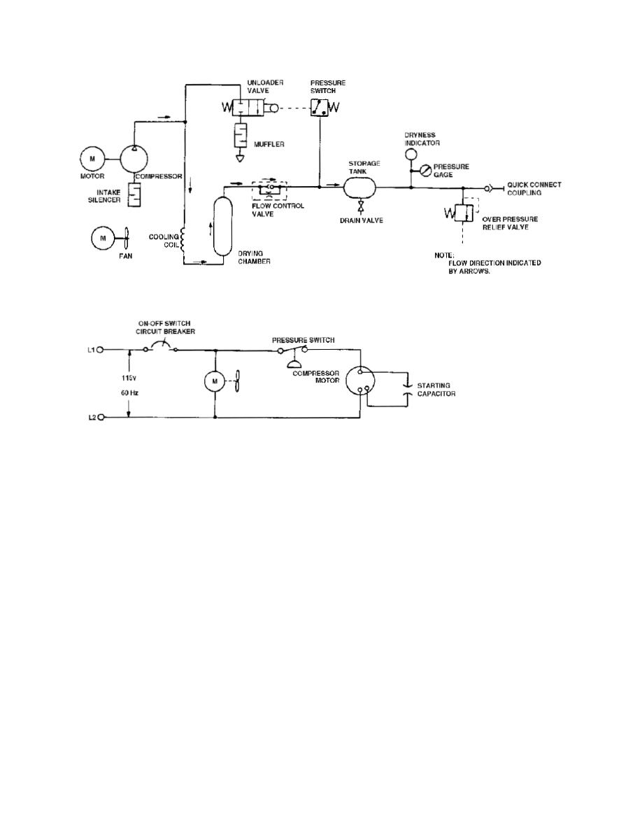 (2) The compressor directs compressed air through the cooling coil, the