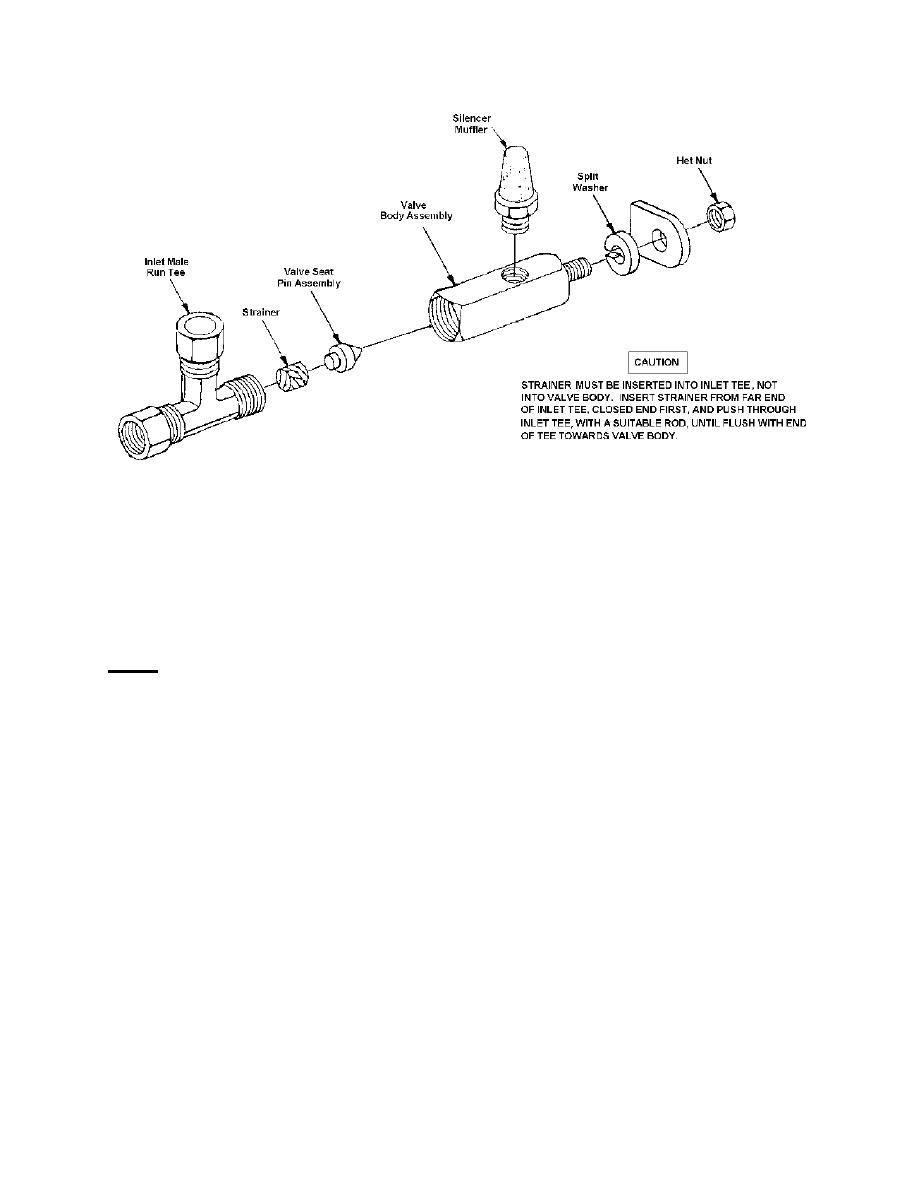 strainer and the inlet tee into the valve body. Install the muffler.