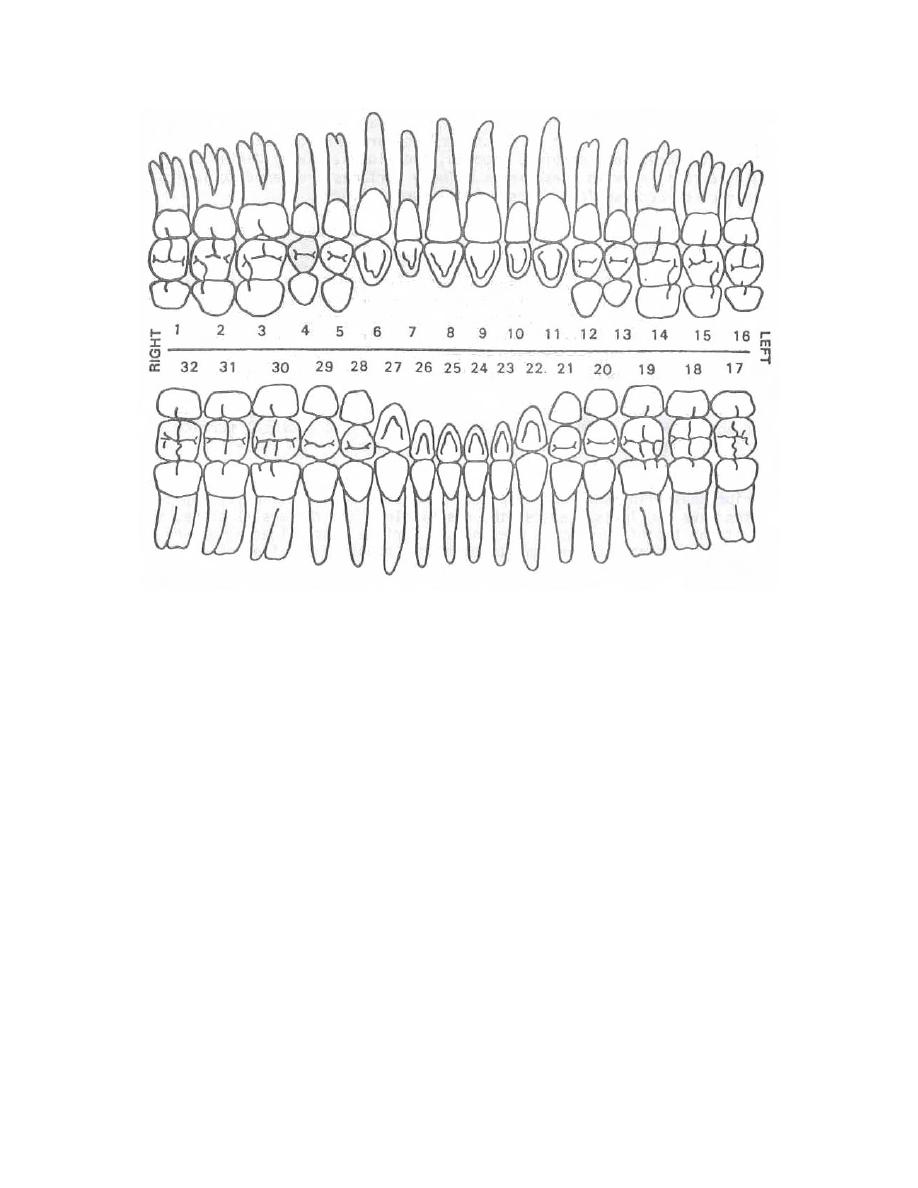 Figure 4-4. Permanent teeth; numbers of the teeth.