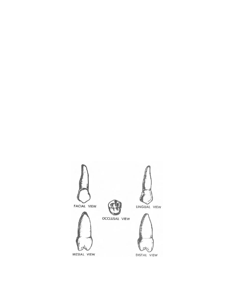 The maxillary second bicuspid (figure 4-24) is very similar to the first bicuspid.