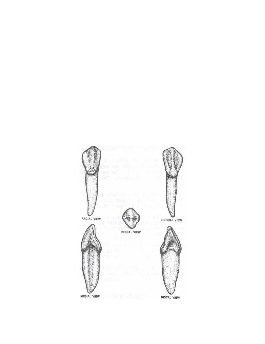 maxillary cuspid. The distal slope of the incisal margin is almost twice the length of the