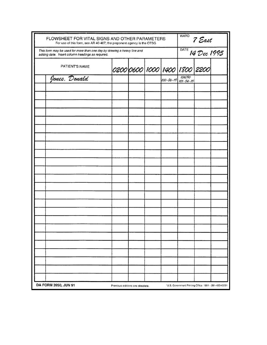 > Figure 6-5. Example of a DA Form 3950, Flowsheet for Vital Signs - Taking Vital Signs