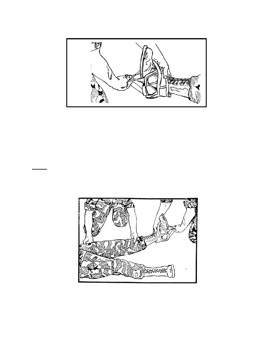 assistant, lift the casualty's injured leg so the splint can be slipped beneath the leg (see
