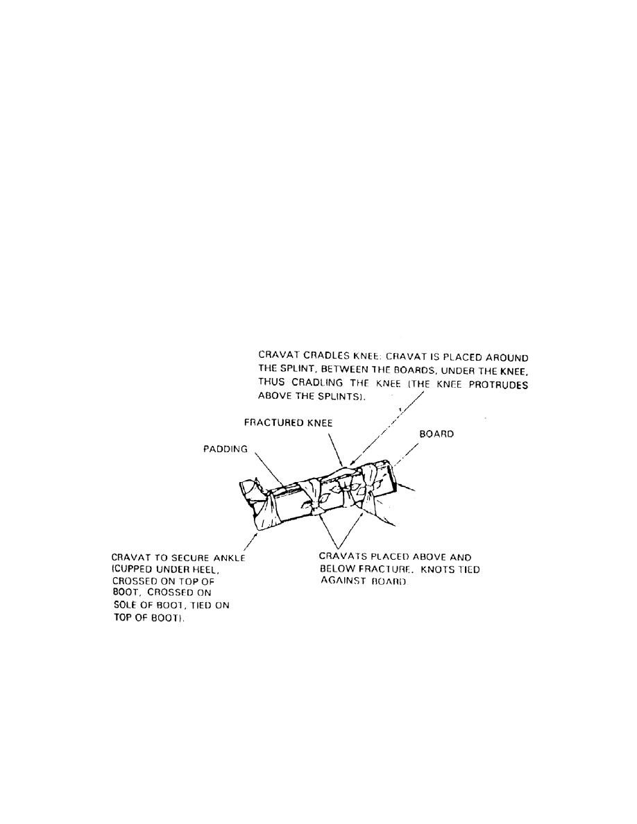 and secure the injured leg to the uninjured leg. Bring the cravat up the outside splint