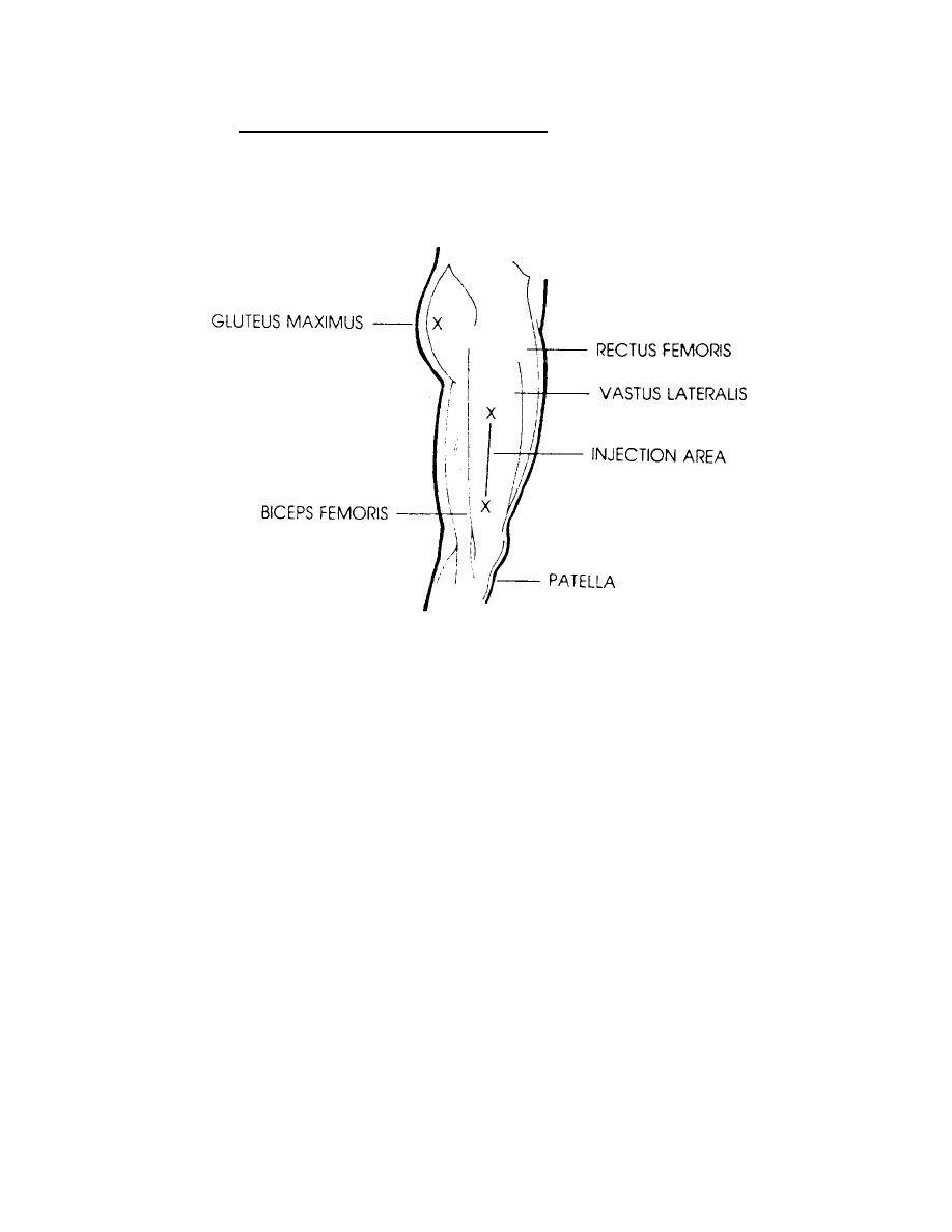 thigh. The injection site is about a hand's width above the knee to a hand's width below