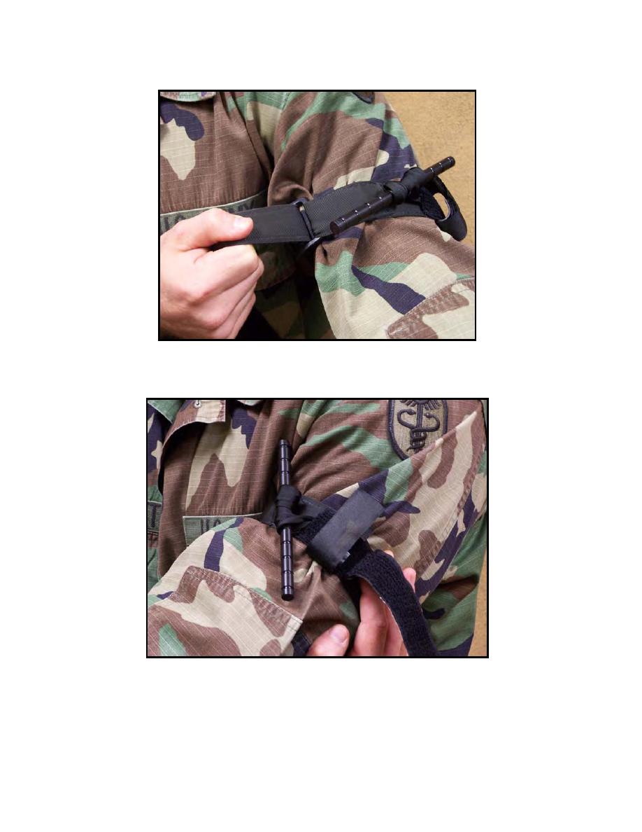 > Figure 2-16. Adhere self-adhering band completely around the limb until the clip is reached - Tactical Combat Casualty Care and Wound Treatment