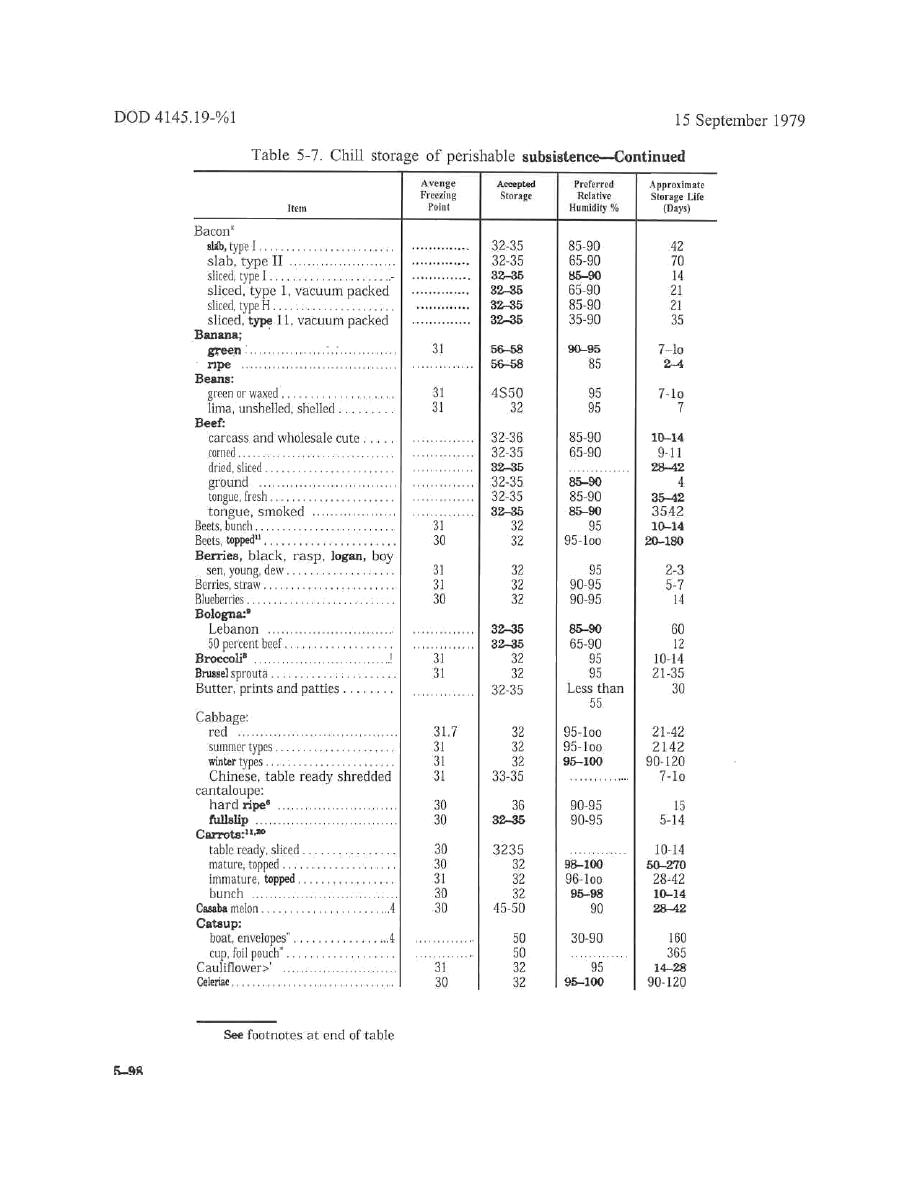 Table 5-7. Chill storage of perishable subsistence - Storage and Sanitation