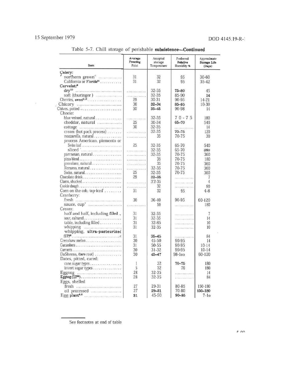 > Table 5-7. Chill storage of perishable subsistence (Cont) - Storage and Sanitation - MD07170099