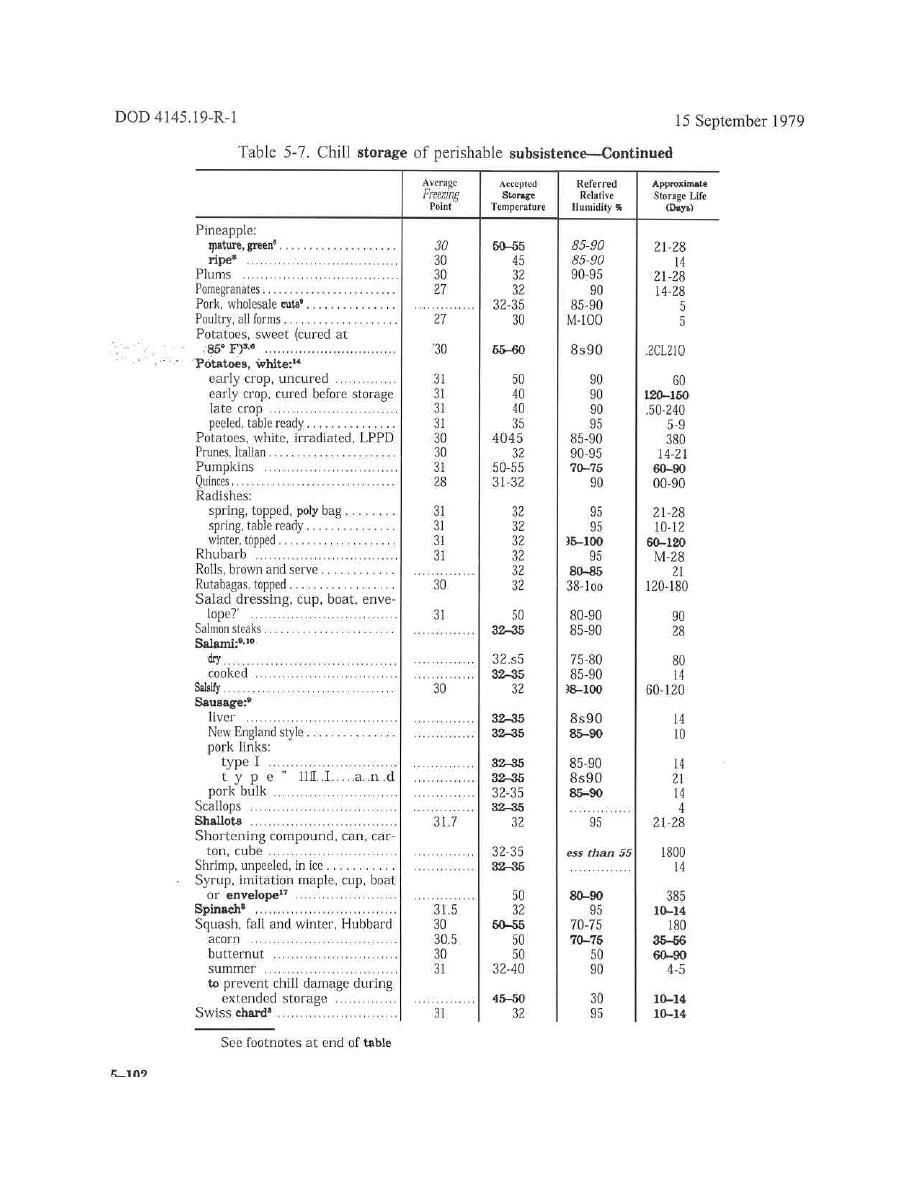 > Table 5-7. Chill storage of perishable subsistence (Cont) - Storage and Sanitation - MD07170102