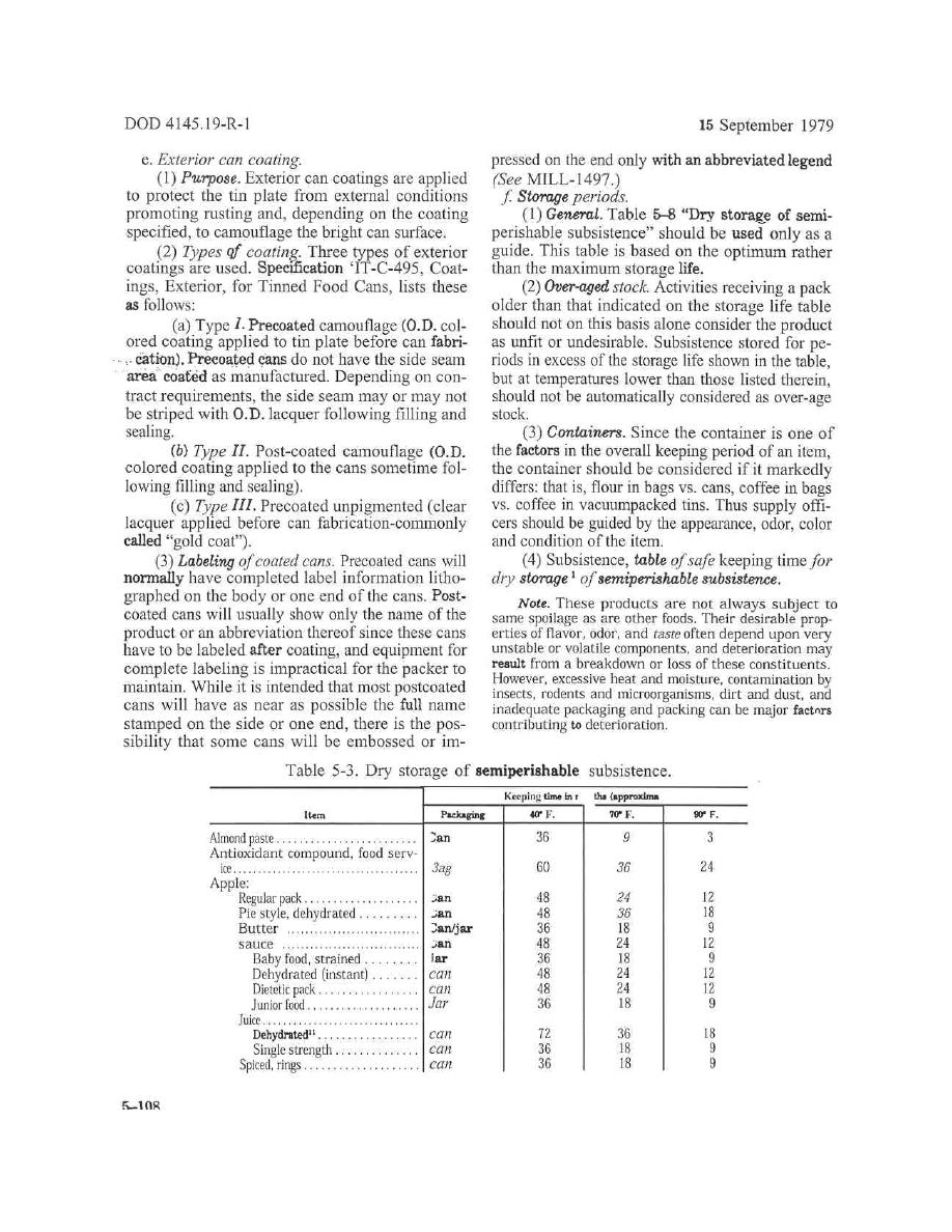 > Table 5-8. Dry Storage of Semiperishable Subsistence - Storage and Sanitation
