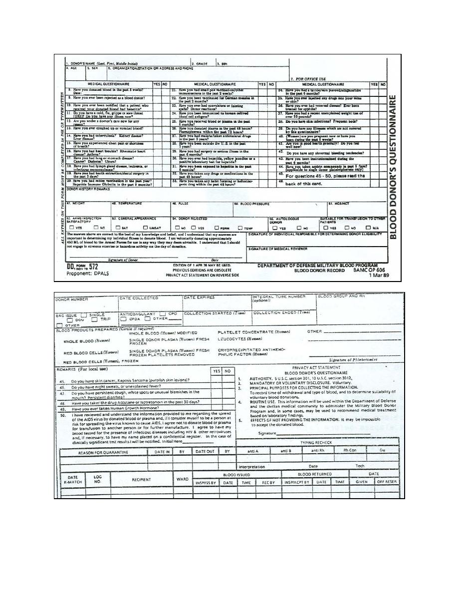 > Figure 1-1. Blood donor record card (top--front; bottom--back). - Immunohematology and Blood Banking I