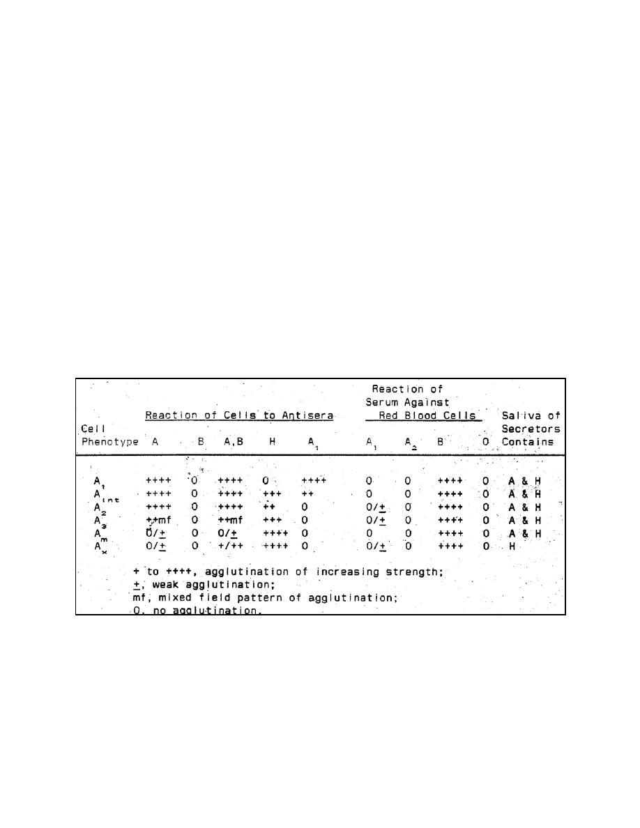 Table 2-7. Serologic reactions of A phenotypes. (Adapted from Race and Sanger)