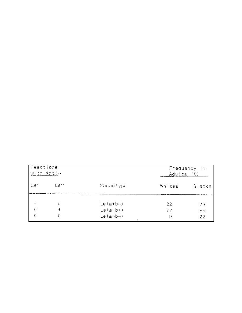 Table 2-14. Lewis red blood cell phenotypes.