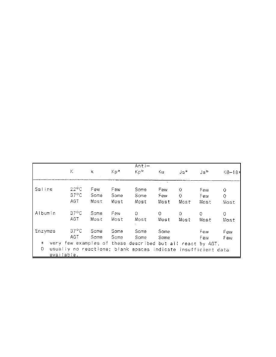 Table 2-20. Serologic behavior of Kell system antibodies.