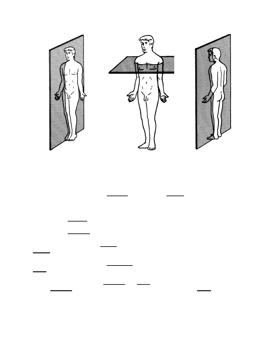 Figure 1-3, A. The sagittal plane. B. The horizontal plane. C. The frontal plane.