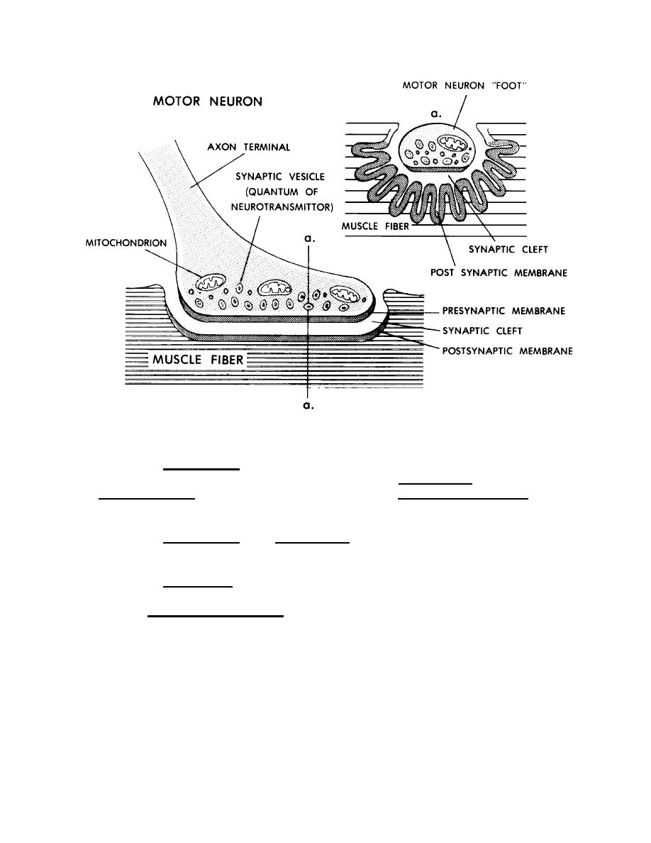 (3) Muscle fiber. The terminal bulb of the motor neuron protrudes into the