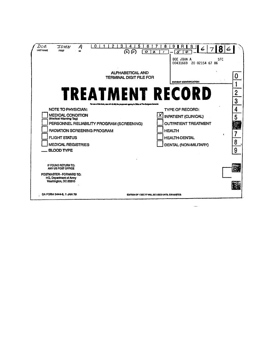 Figure 1-1. Completed DA Form 3444-6 used as a file folder for an Inpatient