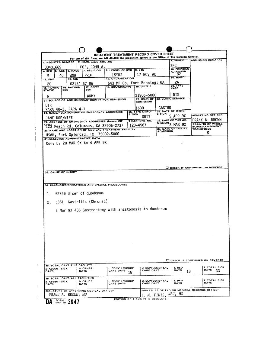 > Figure 1-2. DA Form 3647 (Inpatient Treatment Record Cover Sheet). - Medical Records Admin I Book 1 of 2