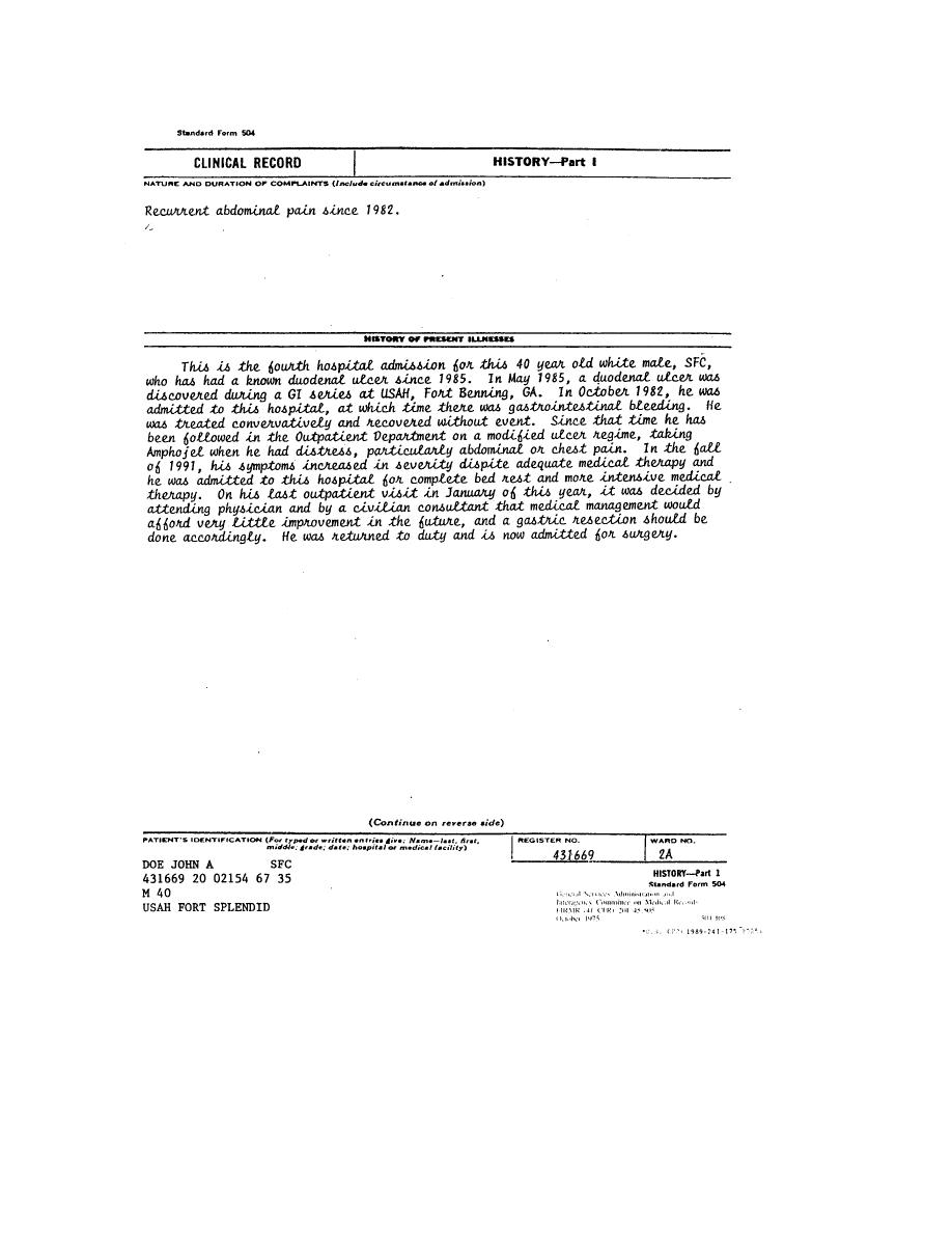 > Figure 1-5. SF 504 (History - Part 1). - Medical Records Admin I Book 1 of 2