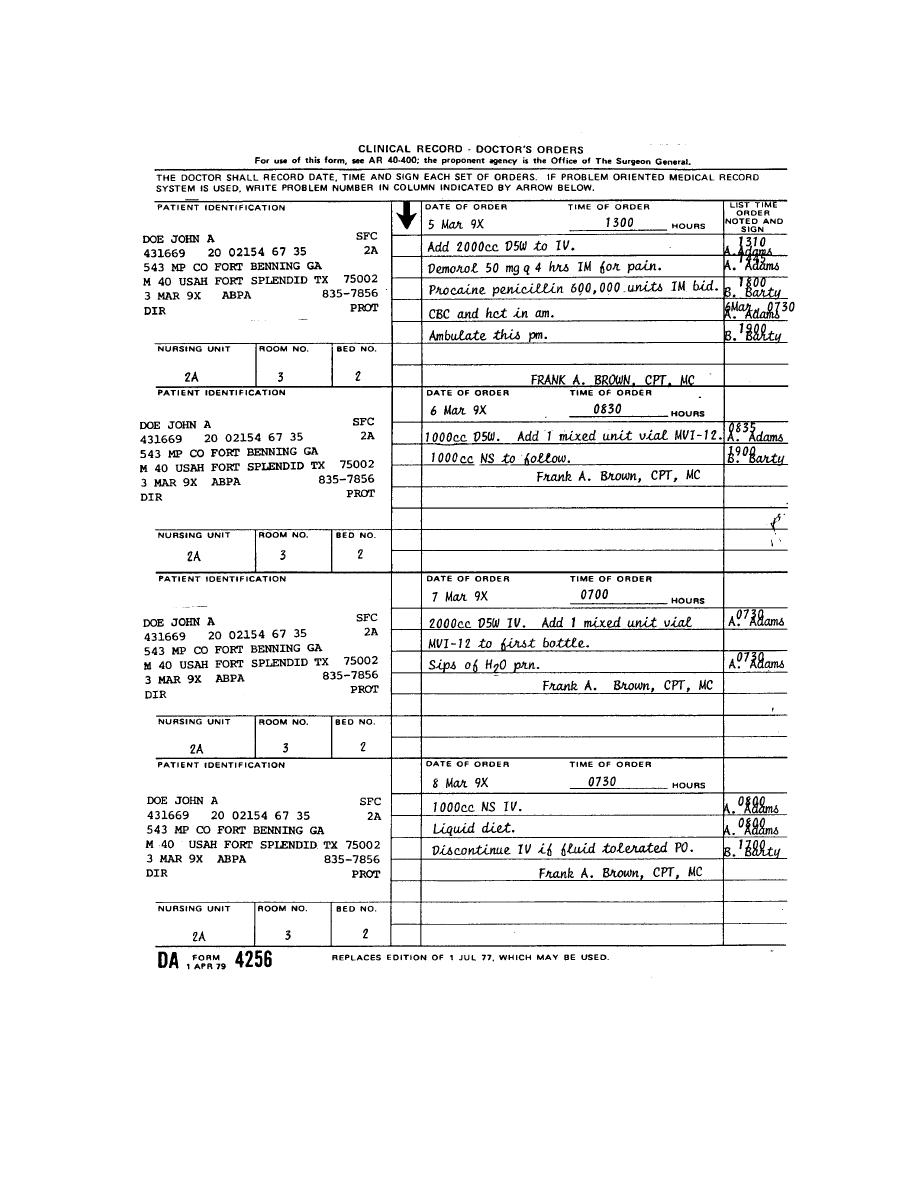 > Figure 1-10. DA Form 4256 (Doctor's Orders). - Medical Records Admin I Book 1 of 2