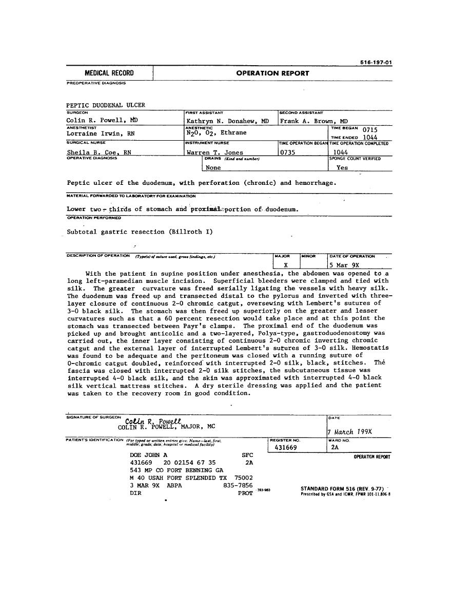 > Figure 1-12. SF 516 (Operation Report). - Medical Records Admin I Book 1 of 2