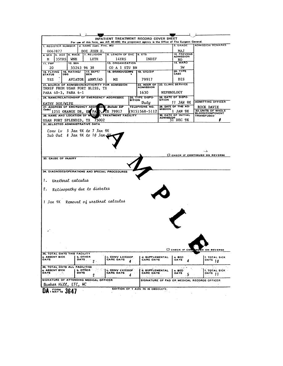 > Figure 2-2. ITRCS (handwritten and typed copies) (continued). - Medical Records Admin I Book 1 of 2
