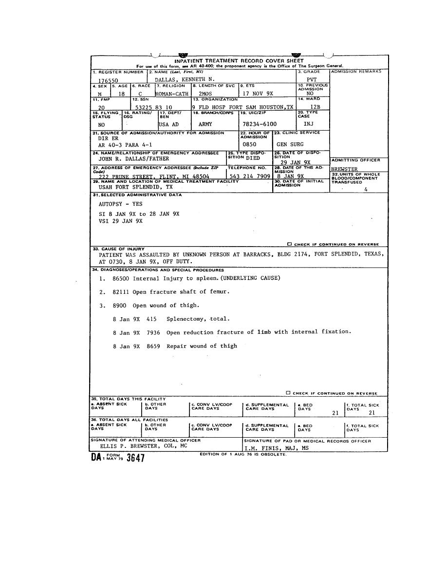 > Figure 4-2. DA Form 3647 (Inpatient Treatment Record Cover Sheet). - Medical Records Admin I Book 1 of 2